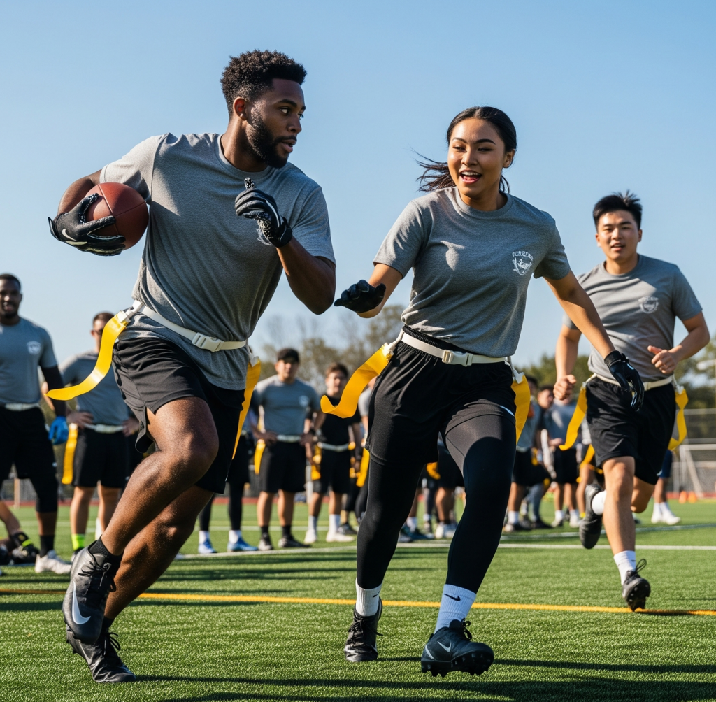 Our mission is to foster a vibrant and inclusive community where adults of all skill levels can come together to enjoy the sport of flag football, build lasting friendships, and promote a healthy, active lifestyle in a fun and supportive environment. To provide an organized, competitive, and spirited coed flag football experience that champions sportsmanship, teamwork, and athletic development on and off the field.